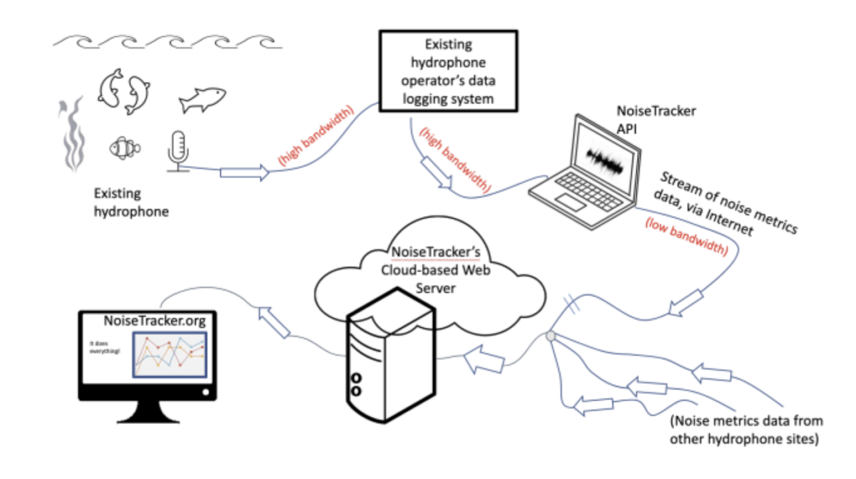 The noise data released by hydrophone operators into the NoiseTracker system will contribute to and enable a comprehensive coast-wide noise monitoring system on a centralized web platform with open access.