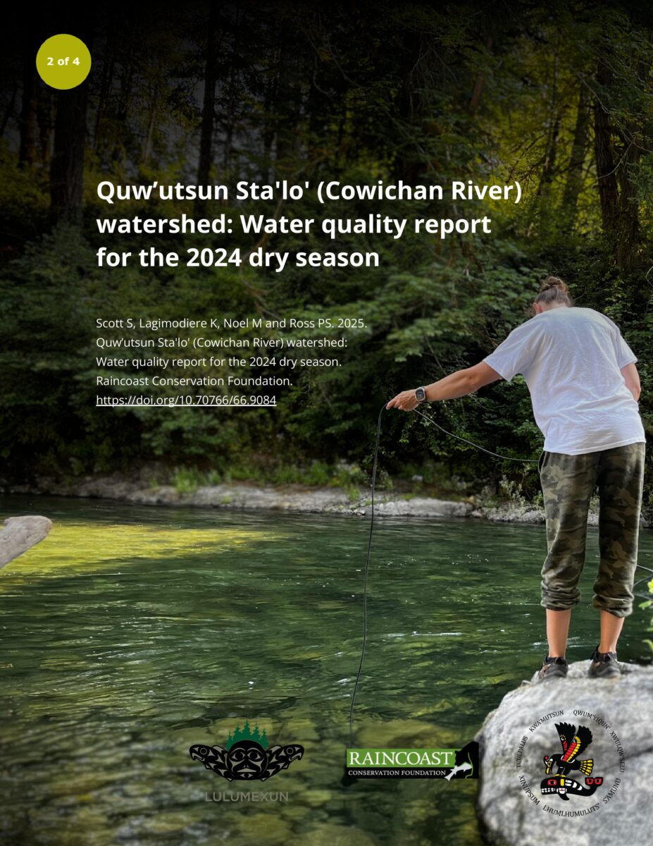 Scott S, Lagimodiere K, Noel M and Ross PS. 2025. Quw’utsun Sta’lo’ (Cowichan River) watershed: Water quality report for the 2024 dry season. Raincoast Conservation Foundation. https://doi.org/10.70766/66.9084